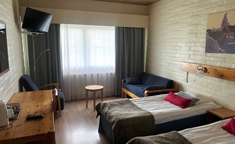 The main Tunturi building is home to the reception, bar and restaurant, with all bedrooms and apartments in separate buildings close by.